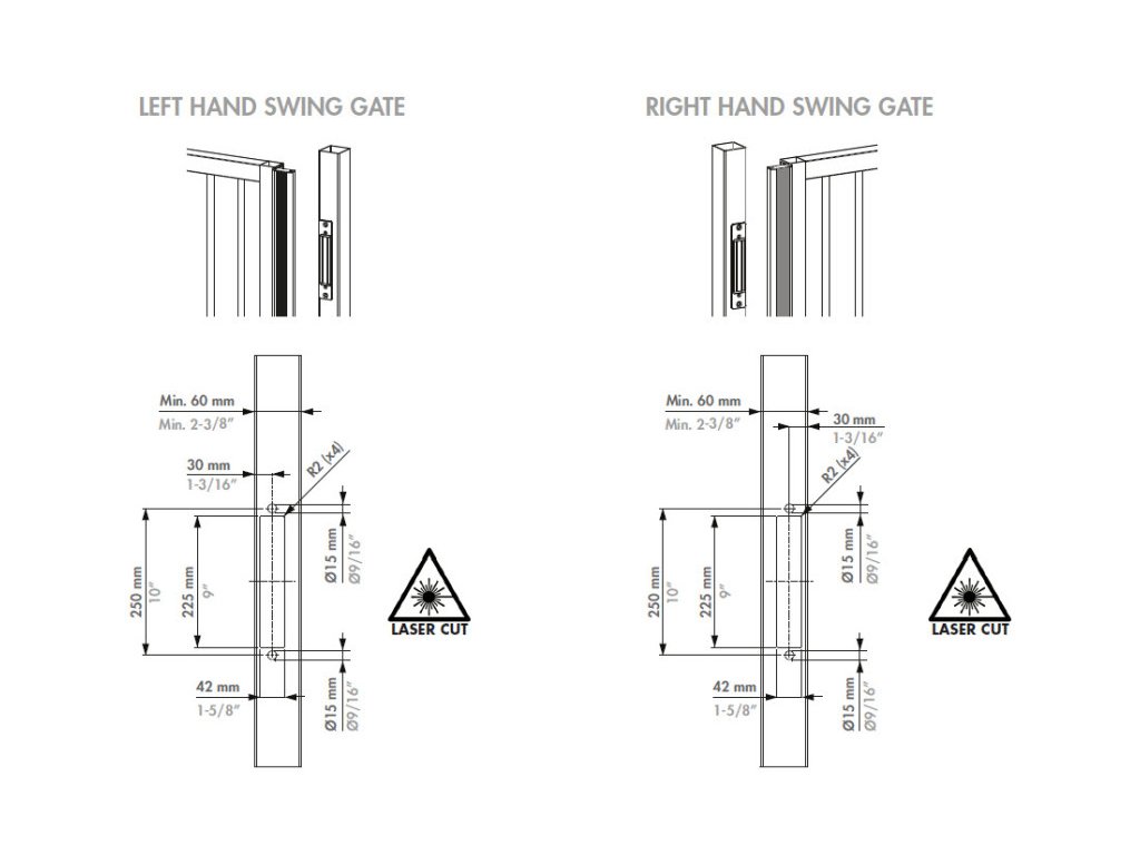 Nastavitelný práškově lakovaný hliníkový profil pro estetické zavírání křídlových bran. Profil je přizpůsoben pro jeden nebo více magnetických zámků Locinox MAGUNIT-2500.