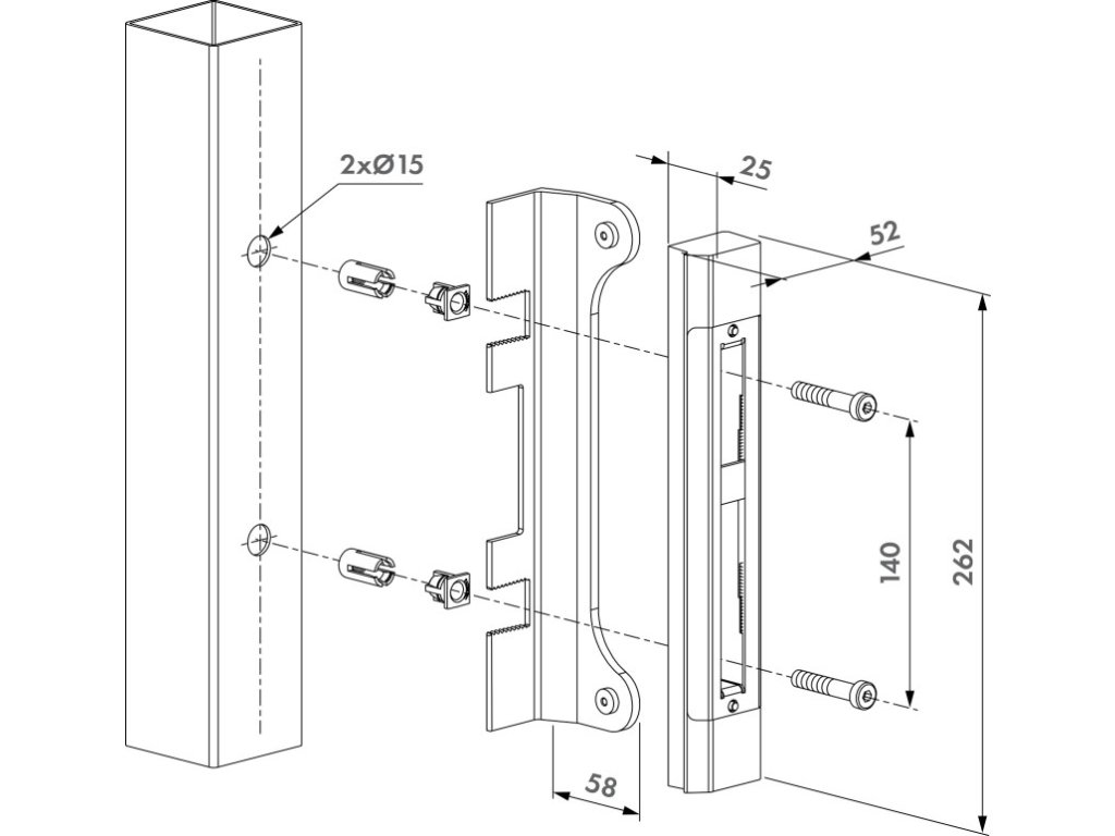 LOCINOX Nerezová zarážka pro zadlabávací zámky, pro profil 40-60 mm, stříbrná, SFKO ALUMQF