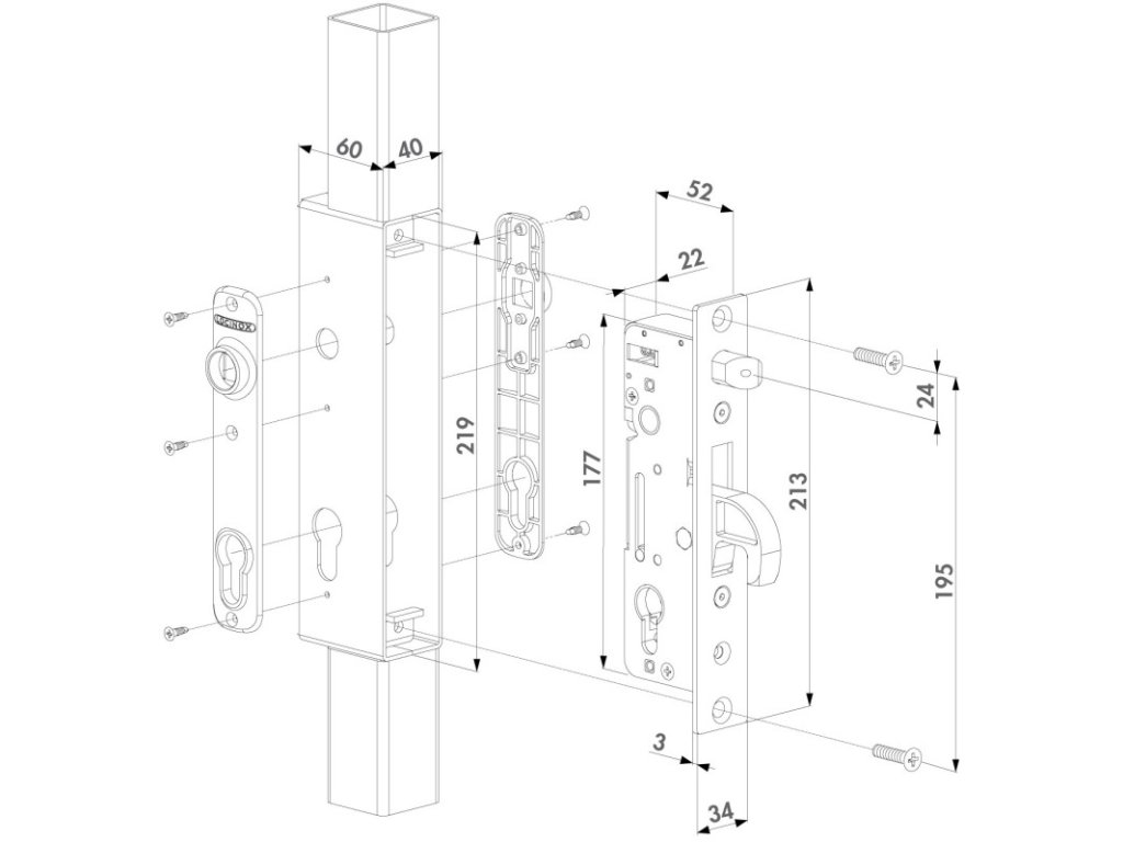 Hákový zámek pro profil od 60x40 mm, s čepem.