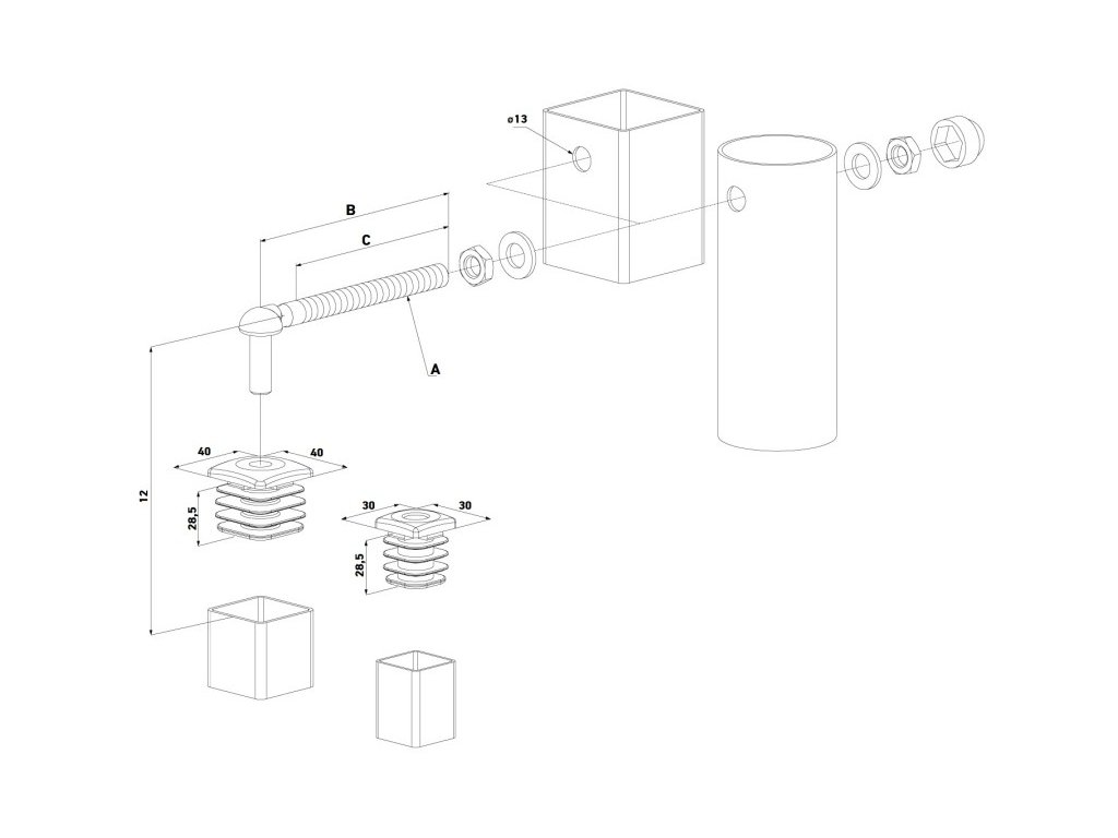 Závěs se ukotví do sloupku brány pomocí závitové tyče a poté se zasune do zaslepovací desky vložené do profilu brány.