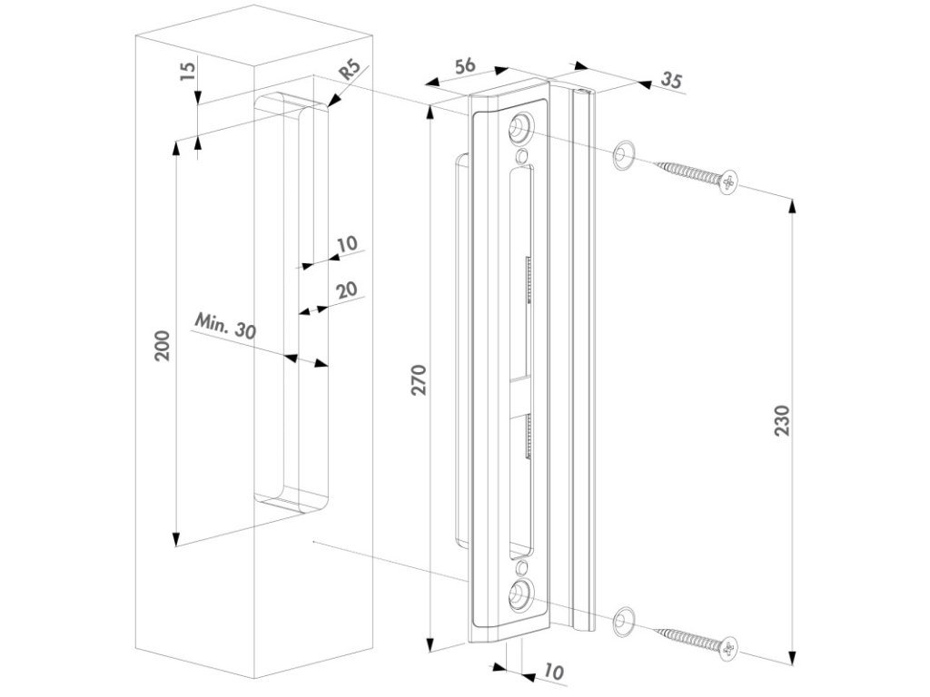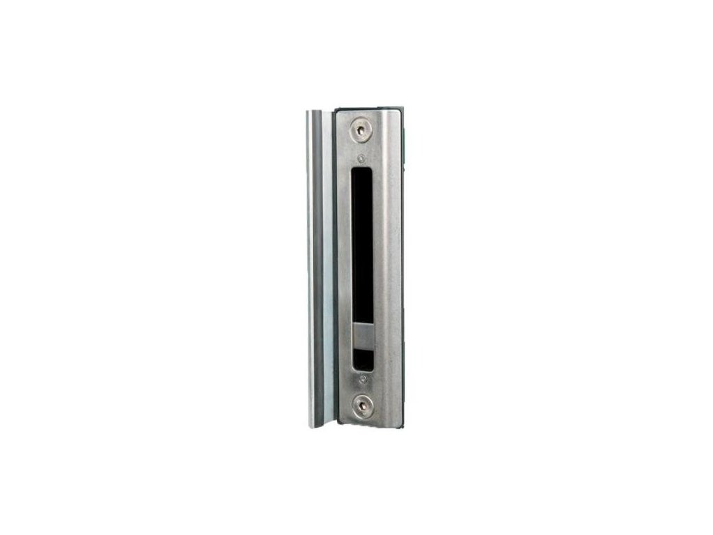 Nerezová ocel LOCINOX SHKW-ALUM, se záchytnou deskou pro hákové zámky a odnímatelným hliníkovým dorazem s pryžovou lištou pro hladký doraz dveří. Protikus je vhodná pro dřevěné profily o šířce 40-60 mm .