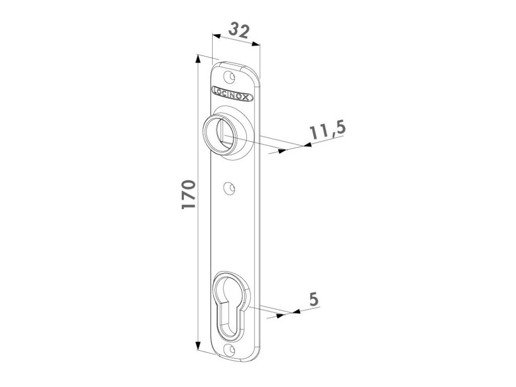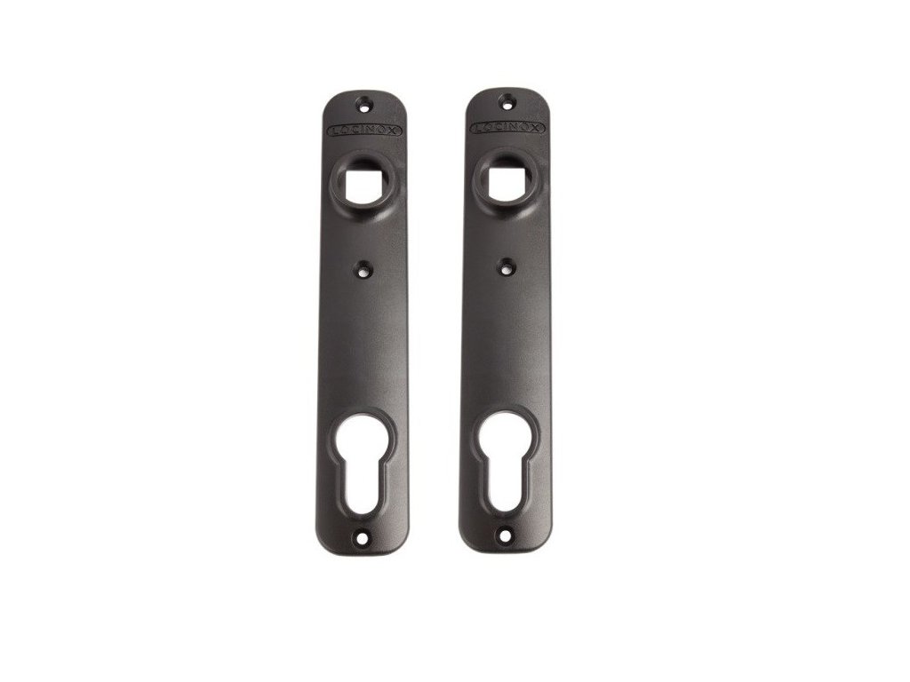 Vnější ochranný štítek Locinox 3020-HYB-STD z polyamidu, černá barva, pro zadlabávací zámky Locinox s roztečí 92 mm, vhodný také pro zámky s kazetou zámku LCX-HWLB.