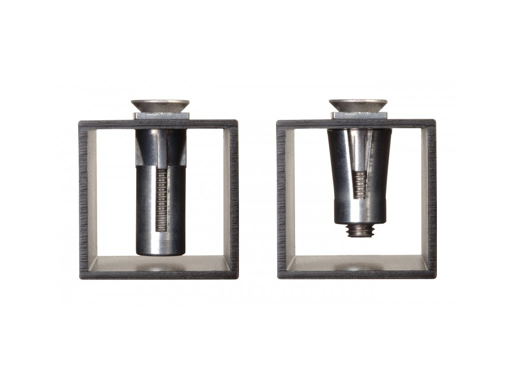 Upínací šrouby z nerezové oceli s patentovaným upínacím systémem, díky němuž se při utahování šroubu plášť roztáhne, zařízne se do stěny profilu a zůstane na místě i po vyšroubování. Šrouby mají vysokou odolnost proti zatížení v tahu, a to až do 1000 kg.