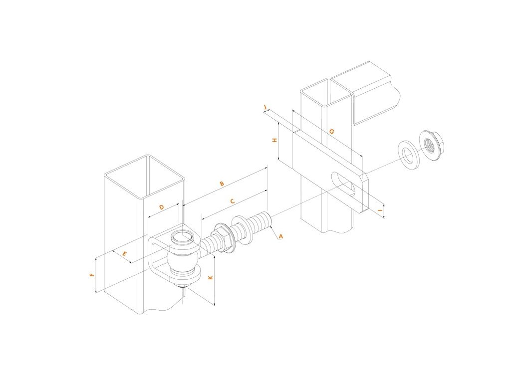Žárově pozinkované závěs Locinox GBMU-Z, třícestně nastavitelný s otevíráním v úhlu 180°. Hloubka a vzdálenost mezi bránou a sloupkem jsou nastavitelné po instalaci na bránu.