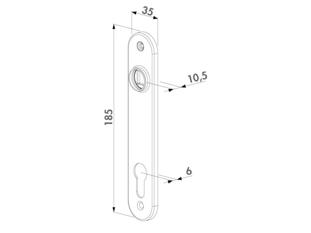 Štítek obsahuje otvory pro rukojeť a válec (fabka).