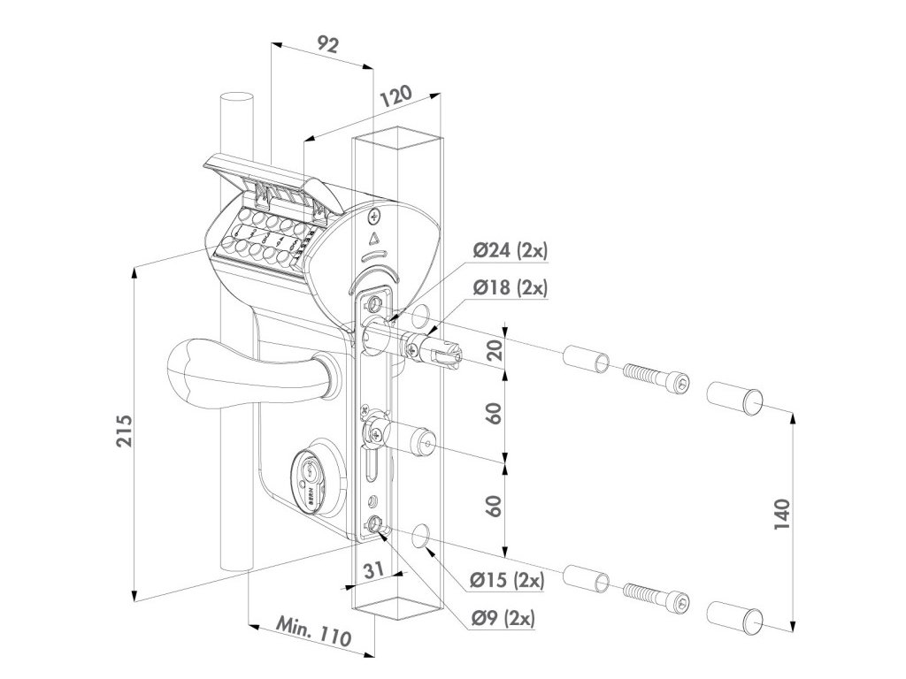 Panel s mechanickým kódem na obou stranách s možností nastavení různých vstupních a výstupních kódů. Panel klávesnice je chráněn polyamidový kryt proti dešti a prachu. Automatické resetování kódu po stisknutí rukojeti.