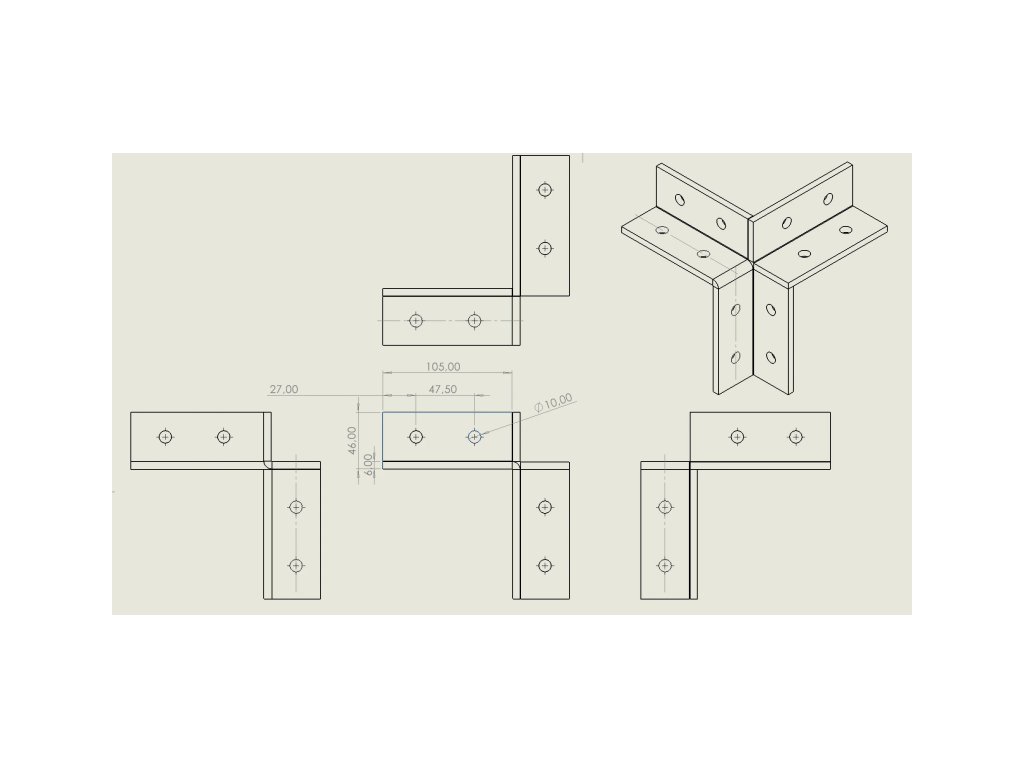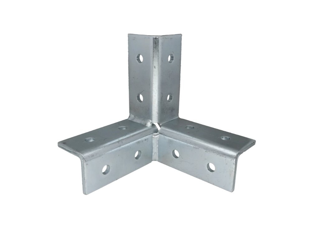 Tento montážní úhelník je určen ke spojení montážních nosníků a konzol v rohu. Spojení úhelníku s nosníkem nebo konzolou se provádí pomocí metrického šroubu, podložky a jezdce, což zajišťuje pevné a spolehlivé uchycení.