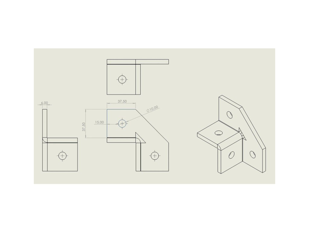 Tento montážní úhelník je určen ke spojování montážních nosníků a konzol podúhlem 90° .Spojení úhelníku s nosníkem nebo konzolou se provádí pomocí metrického šroubu, podložky a jezdce, což zajišťuje pevné a spolehlivé uchycení.