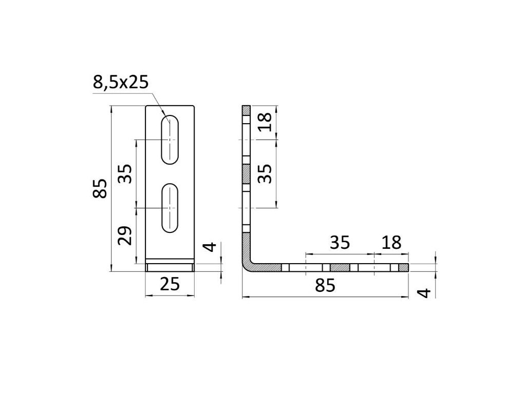 Tento montážní úhelník je určen ke spojování montážních nosníků a konzol podúhlem 90° .Spojení úhelníku s nosníkem nebo konzolou se provádí pomocí metrického šroubu, podložky a jezdce, což zajišťuje pevné a spolehlivé uchycení.