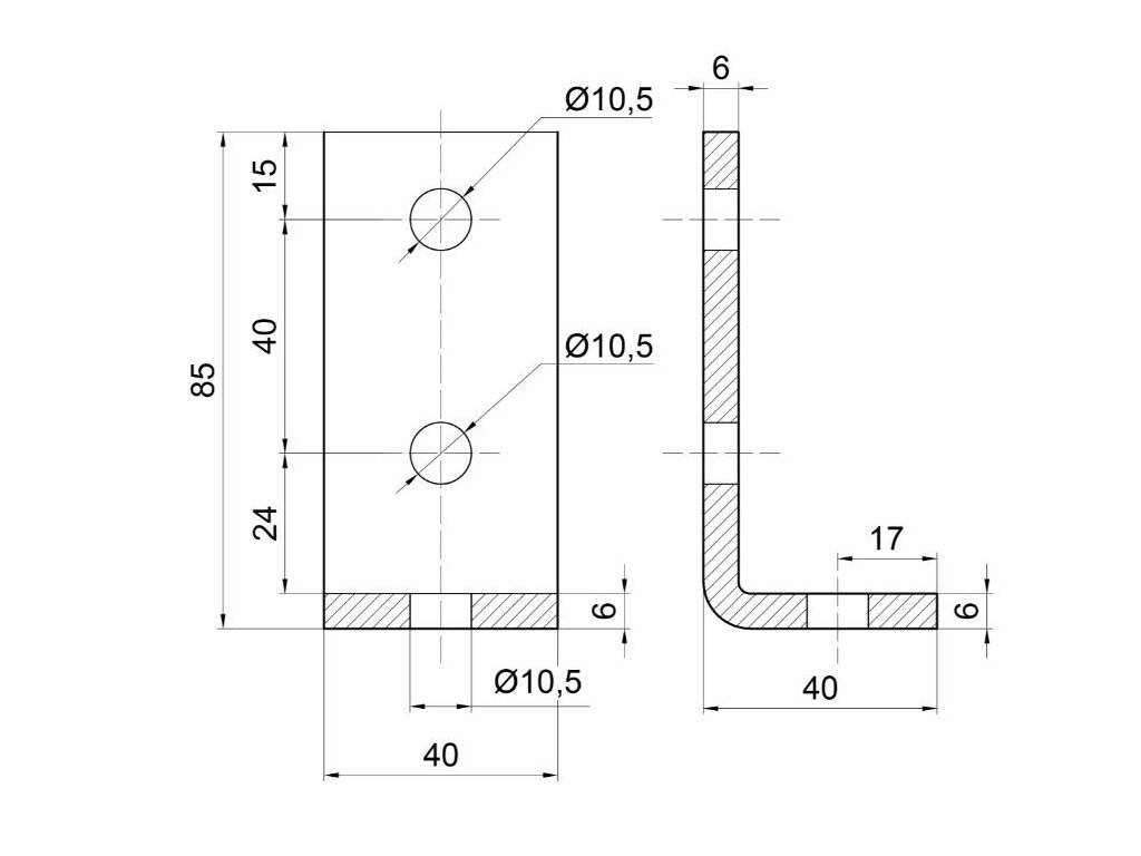 Tento montážní úhelník je určen ke spojování montážních nosníků a konzol podúhlem 90° .Spojení úhelníku s nosníkem nebo konzolou se provádí pomocí metrického šroubu, podložky a jezdce, což zajišťuje pevné a spolehlivé uchycení.