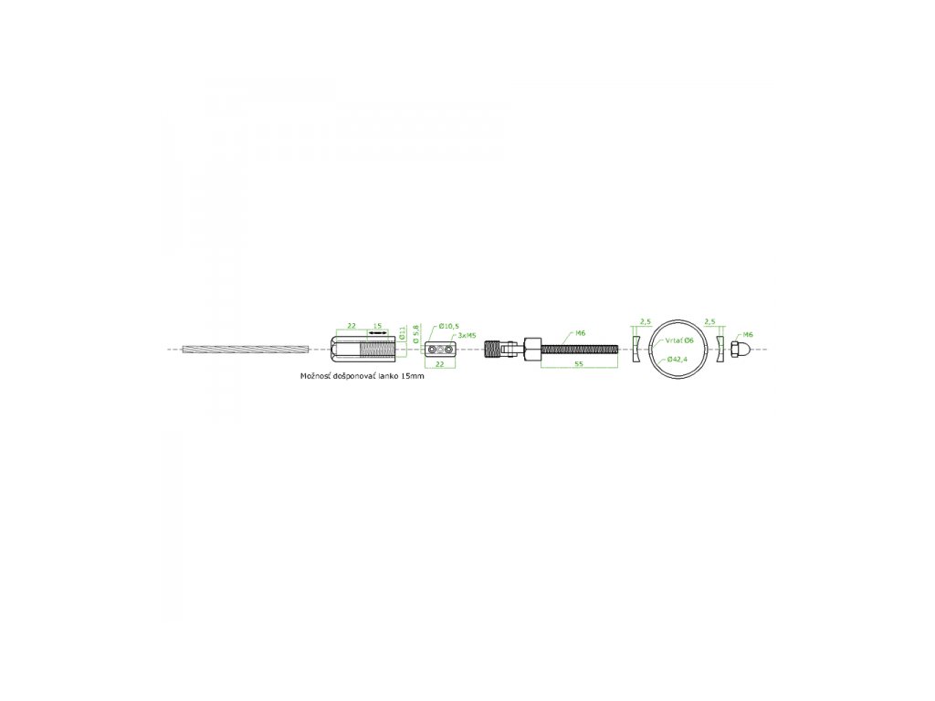 Nastavitelná trubková rukojeť Ø42,4 mm pro nerezový drát Ø5 mm, broušená nerezová ocel