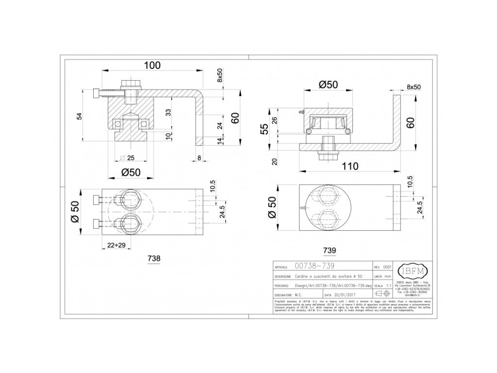 Závěs s ložiskem o průměru 50 mm. Nastavitelný v horizontálním i vertikálním směru.