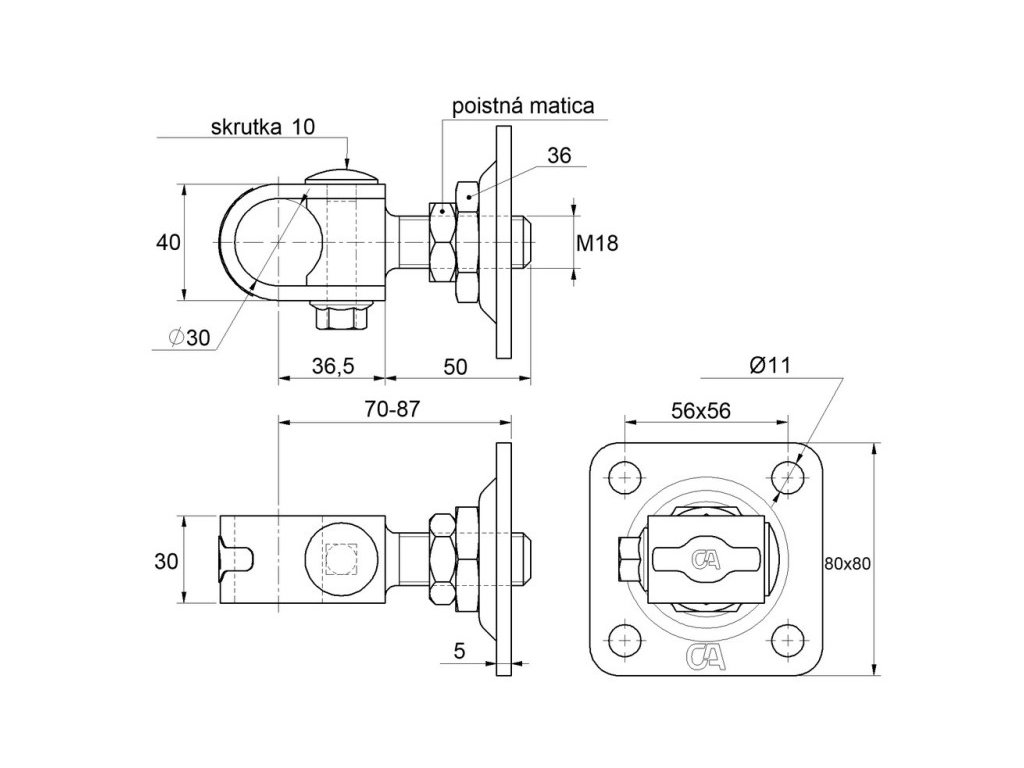 Nastavitelný závěs pro šroubování, M18, deska 80x80mm