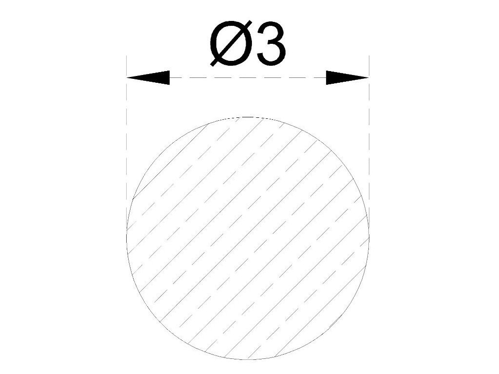 Kulatá tyč z nerezové oceli o průměru 3 mm, kartáčovaná nerezová ocel / AISI304.
