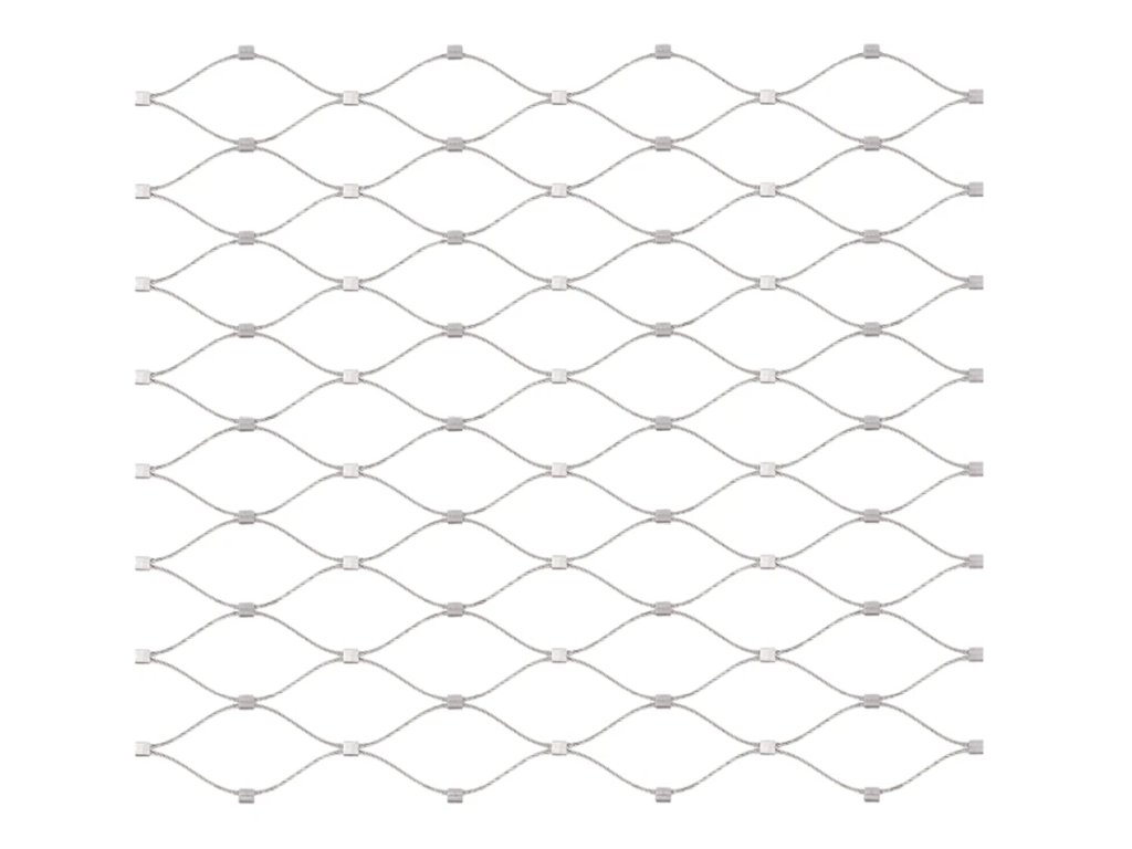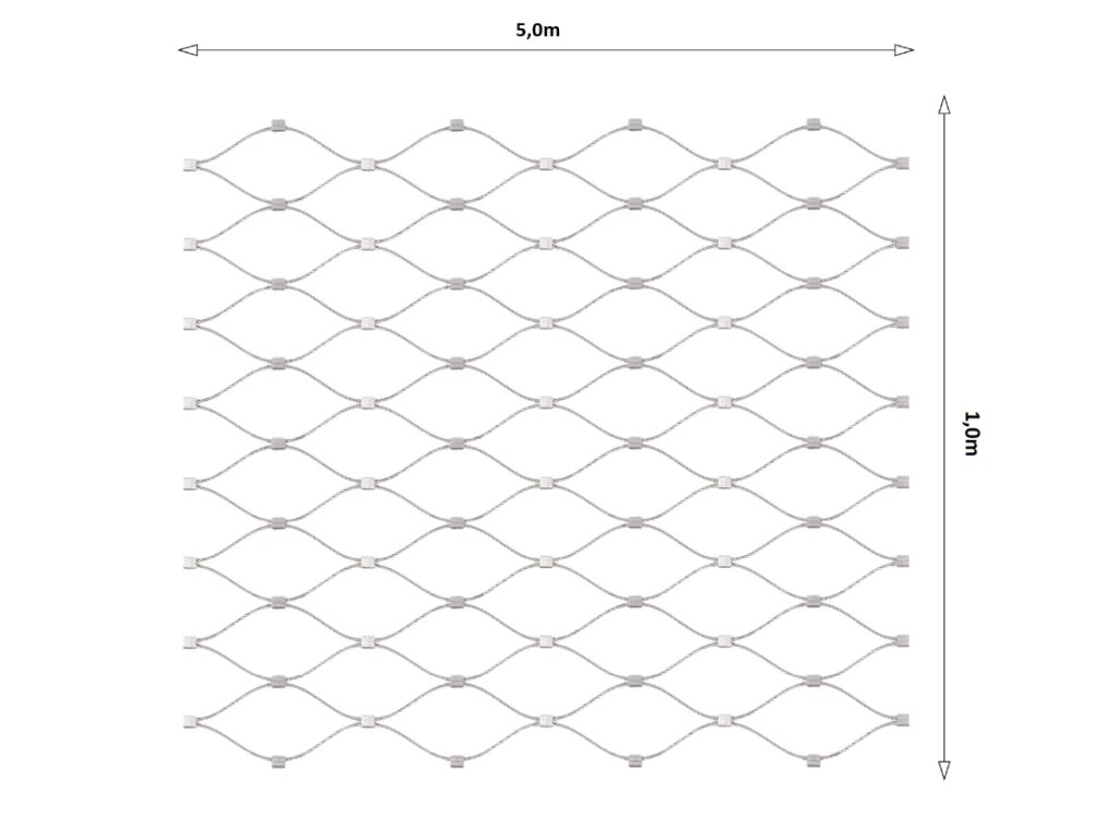 Nerezová výplňová síť, upletená z nerezového lanka o průměru 2 mm, s velikostí oka 60x104 mm. Je vyrobena z nerezavějící oceli AISI316, což zaručuje vysokou pevnost a dlouhodobou odolnost vůči korozi.