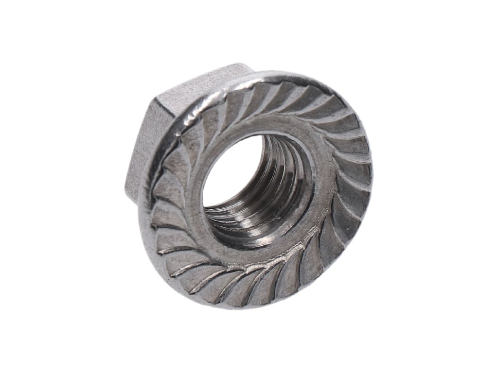 Matice je také specifická vroubkovaným povrchem příruby, který zabraňuje uvolnění matice v důsledku vibrací. Vroubkovaný povrch také lépe přilne k povrchu.