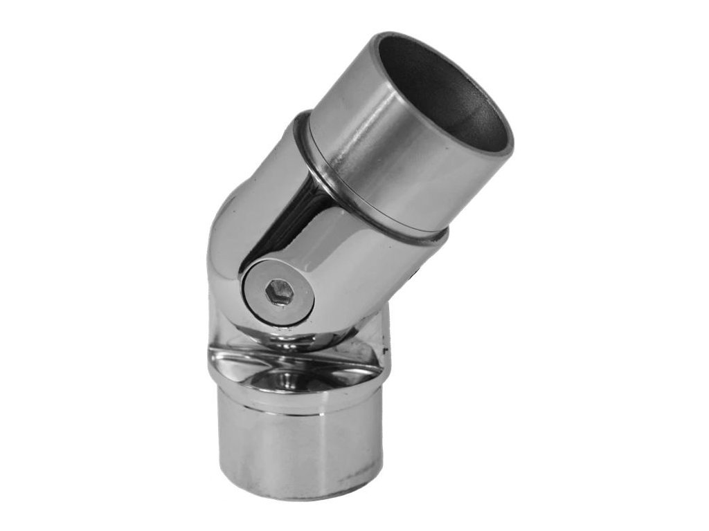 Nerezová nastavitelná spojka s kloubem (0°-90°) pro spojení dvou trubek ⌀42,4x2mm, AISI304, leštěná