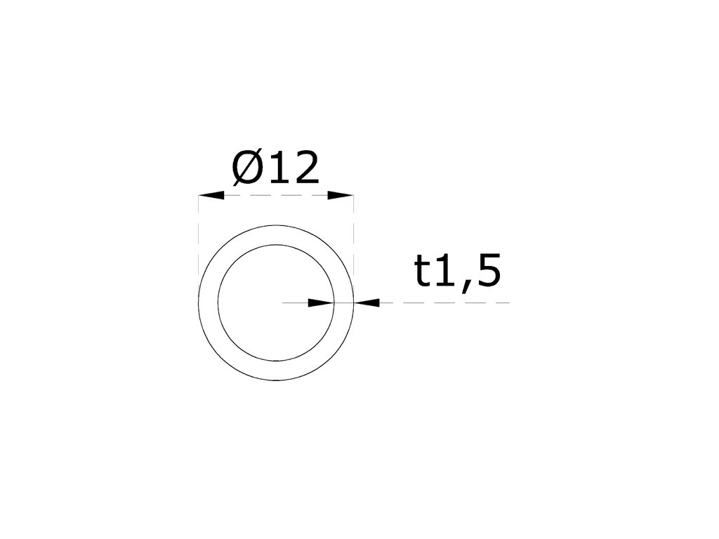 Trubka z nerezové oceli o průměru 12 mm a tloušťce stěny 1,5 mm, broušená nerezová ocel K320/AISI316.