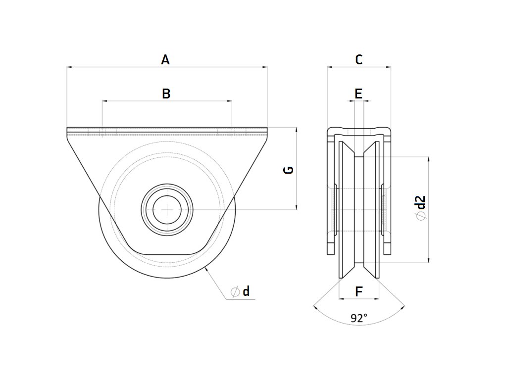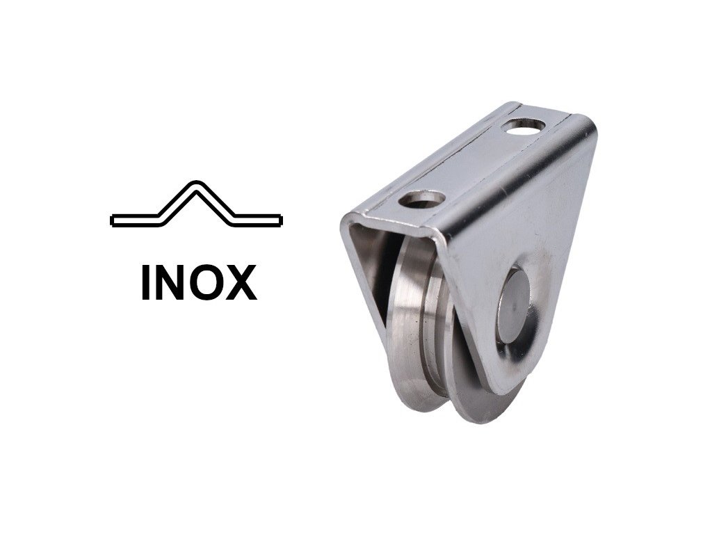 Kola s V-řezem lze použít na V-kolejnicích nebo na všech L-profilech/jezdech s pravým úhlem (90°). Nerezová ocel AISI304.