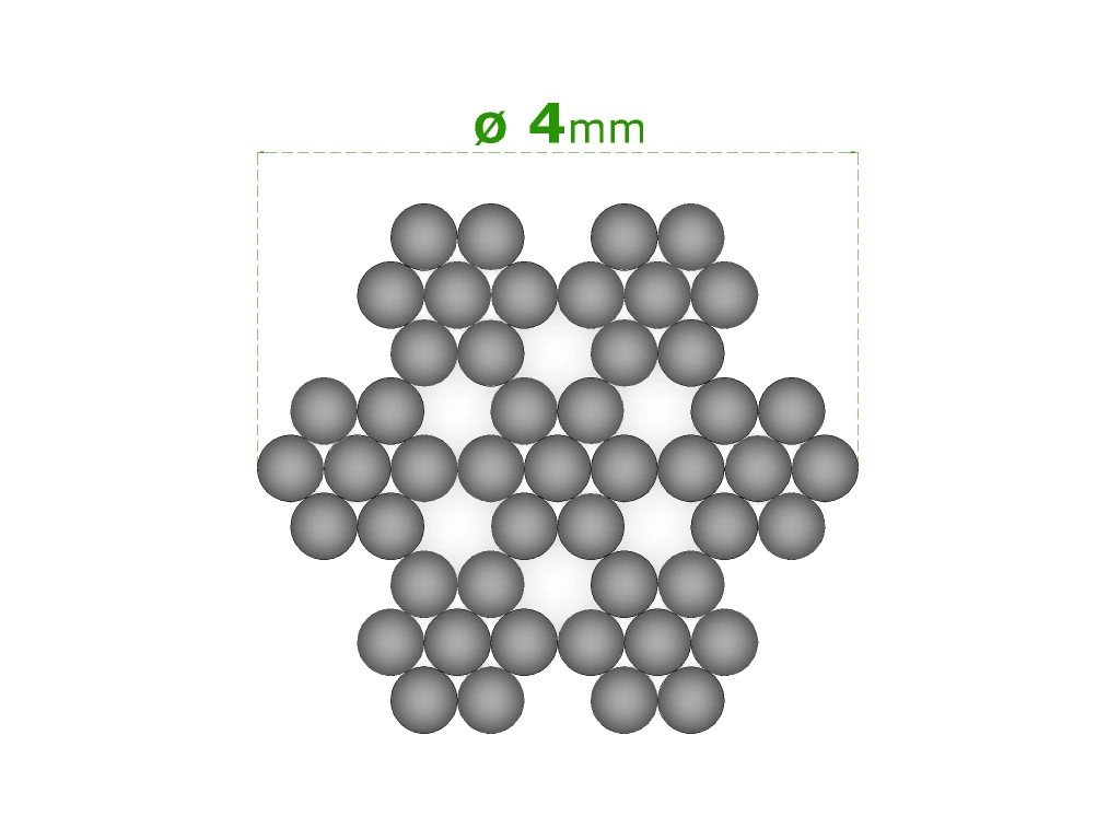 Lano z nerezové oceli, černé, průměr 4 mm, složené ze sedmi svazků po sedmi drátech, vyrobené z vysoce kvalitního antikorozního materiálu AISI316.