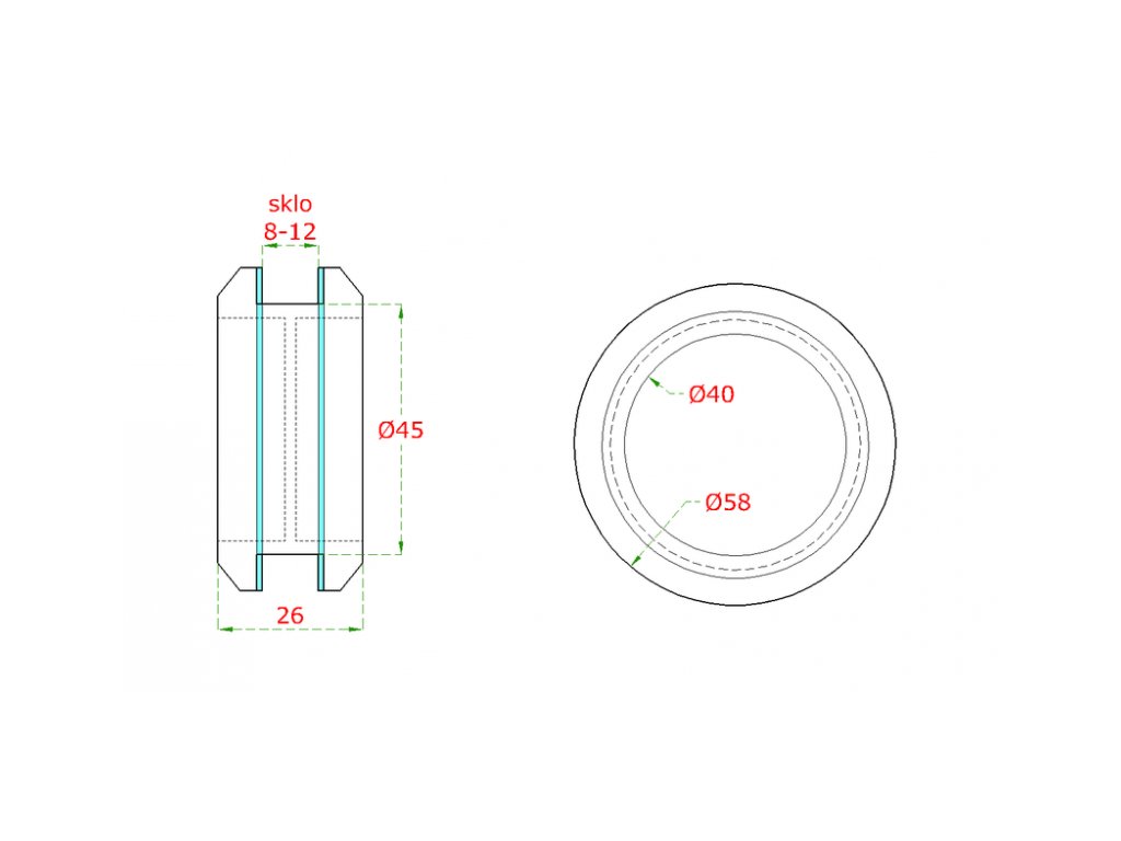 Nerezové madlo ø 58 mm, pro sklo 8-12 mm