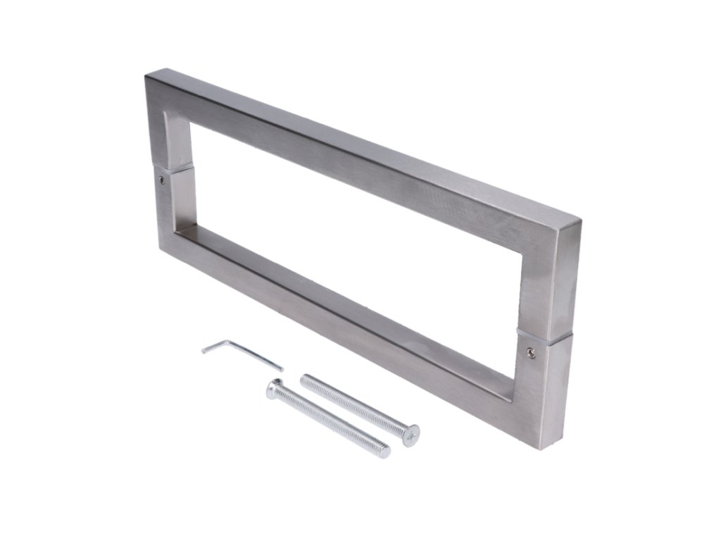 Nerezové čtvercové madlo je vhodné pro posuvné nebo kyvné skleněné dveře o tloušťce 8-12 mm.