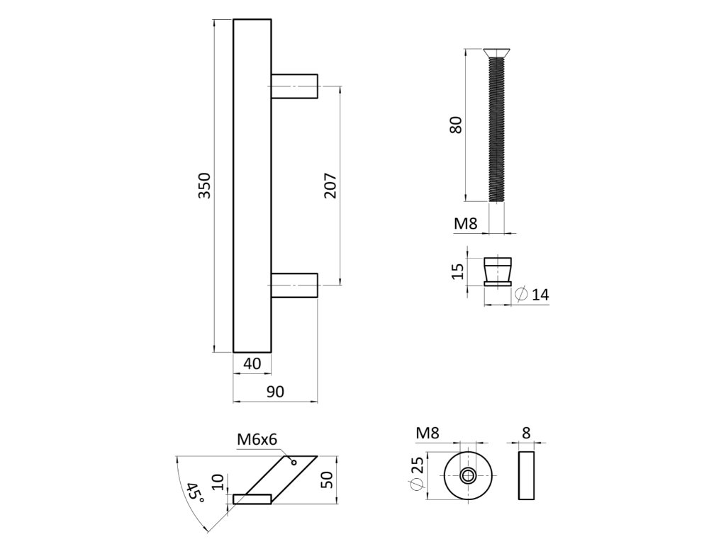 Nerezové madlo se 45° úchytem, 350mm, broušená nerez