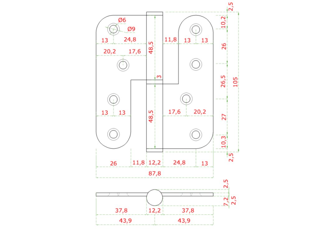 Nerezové panty 100mm (pravé) oválné, kartáčovaná nerezová ocel K320 /AISI304, 1 pár