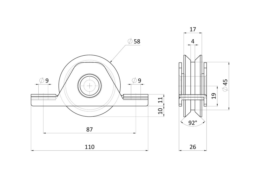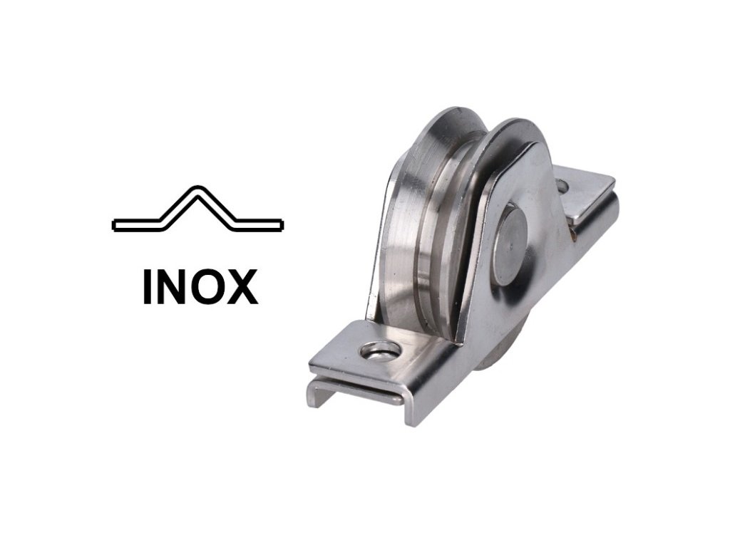 Zapuštěná šroubovaná kolečka se používají kvůli estetice a menšímu odskakování dveří od kolejnice. Kolečka s výřezem ve tvaru V lze použít na kolejnicích ve tvaru V nebo na všech L profilech / jäklech s pravým úhlem (90°). Nerezová ocel AISI304.