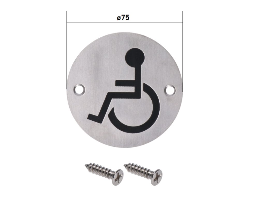 Průměr desky pro označení dveří toalety je 75 mm a tloušťka 1,2 mm.