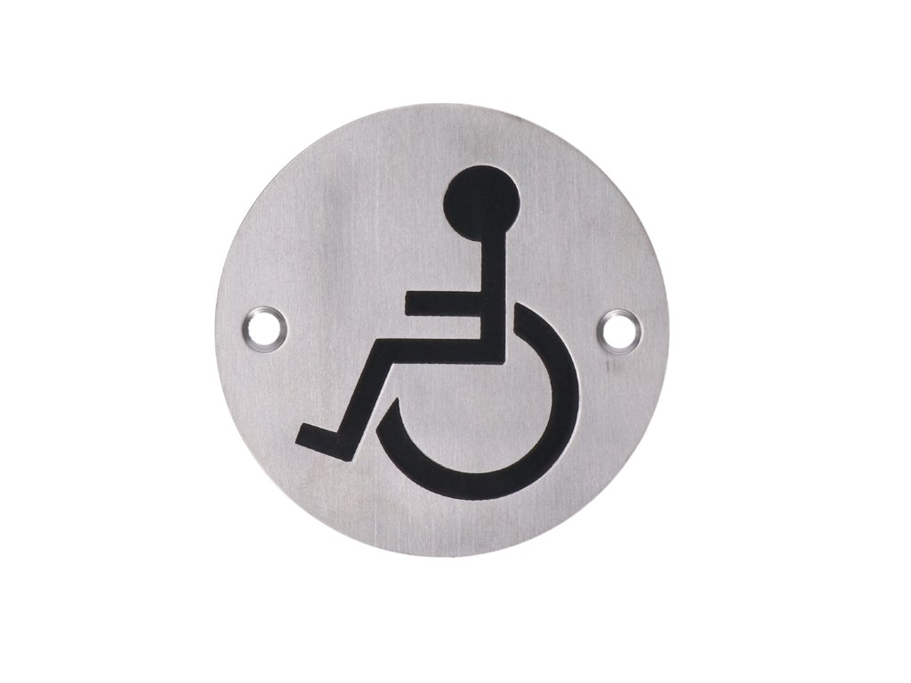 Piktogram z nerezové oceli pro přístupné toalety z nerezové oceli K320 / AISI304 pro elegantní odlišení toalety od klasické kabinky na místnost pro osoby se zdravotním postižením, úrazy nebo jiným znevýhodněním. Tento piktogram je také někdy mylně a bohužel až pejorativně označován jako vozíčkář, imobilní nebo postižený.