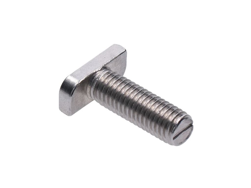 T-šrouby jsou speciálně tvarované s horní částí ve tvaru T, která zapadá do drážky v profilu, což zajišťuje pevnější spojení při kotvení solárního panelu ke konstrukci nebo profilu.