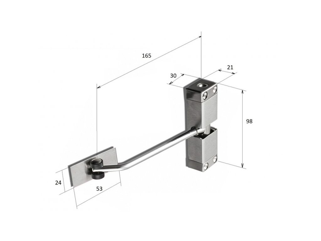 Pružinový zavírač dveří vhodný pro vnitřní dveře s doporučenou maximální hmotností do 40 kg a šířkou dveří do 900 mm. Maximální úhel otevření je 175 stupňů.