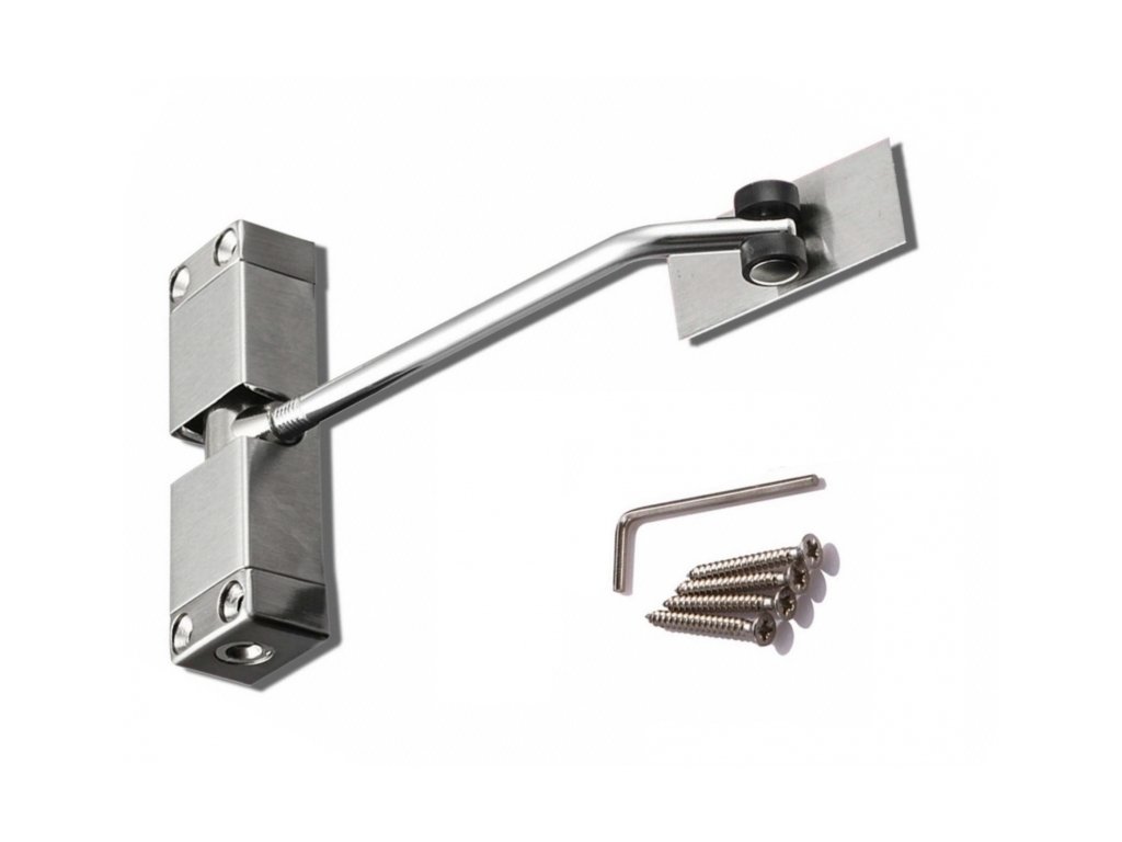 Zavírač je univerzální - vhodný pro levé i pravé dveře, s možností nastavení síly zavírání.