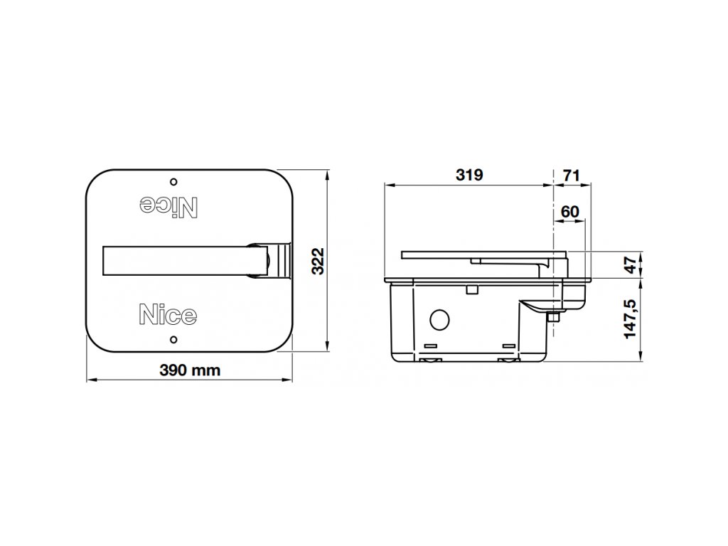 NICE MFABBOX je základní skříň pro podzemní pohony řady NICE M-Fab z oceli s kataforetickým černým nátěrem (označovaným také jako kataforetický nátěr nebo ponorný nátěr).