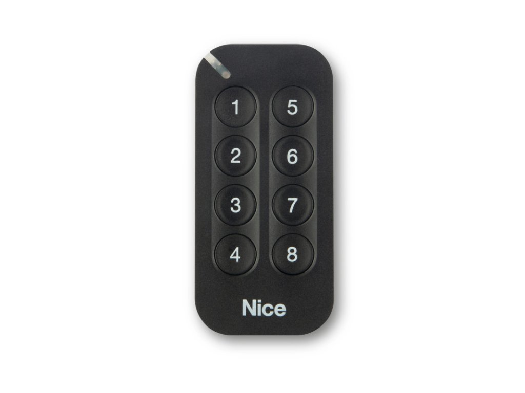 Osmikanálový ( co to znamená ? ) ovladač rodiny NICE Opera kompatibilní ke všem pohonům NICE s plovoucím kódem typu {/} 2 bitový kód umožňuje 4,7 quadriolion kombinací, takže je prakticky nemožné jej zneužít) a indikací vysílaného signálu pomocí LED diody. S pomocí tohoto ovladače můžete ovládat čtyři zařízení značky NICE, případně pomocí přijímače NICE FloX2R ovládat i zařízení jiné značky.