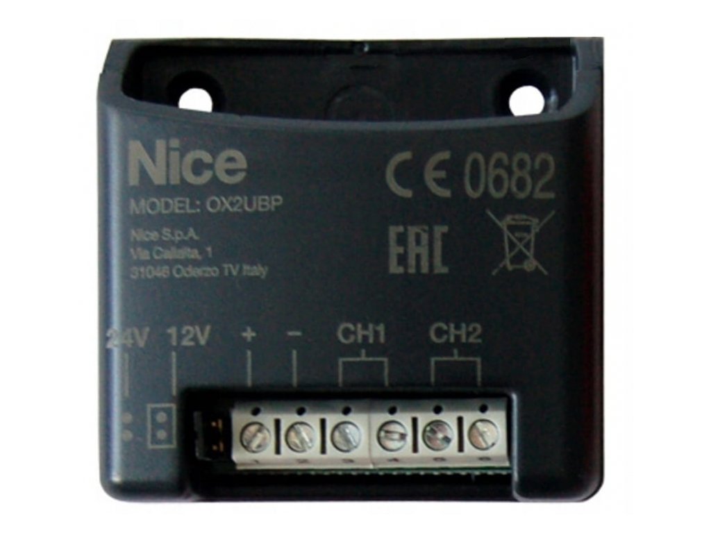 Pěkný OX2UBP je adaptér pro připojení zásuvných přijímačů NICE k pohonům jiných výrobců nebo k elektronice bez konektoru SM. Adaptér lze připojit k libovolné automatizaci se vstupem open-close nebo step-by-step.