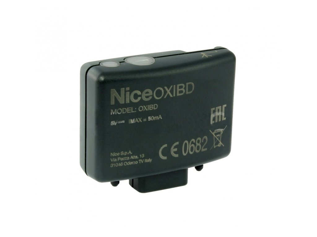 NICE OXIBD je zásuvný čtyřkanálový PLUG-IN přijímač s plovoucím kódem pro 1024 klasických nebo 750 obousměrných vysílačů. Používá se v řídicích jednotkách Wingo, Robus atd.