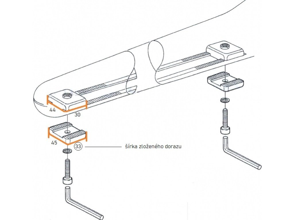 Pohony se zpravidla dodávají s jedním vnitřním dorazem. Použití přídavného dorazu PLA13 lze využít pro nestandardní hodnoty zástavby nebo nestandardní úhly otevření.