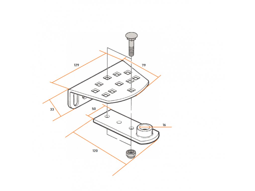 NICE PLA15 - nastavitelná přední konzola pohonu křídlové brány pro přišroubování