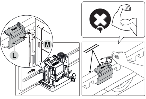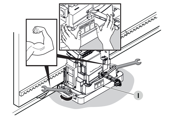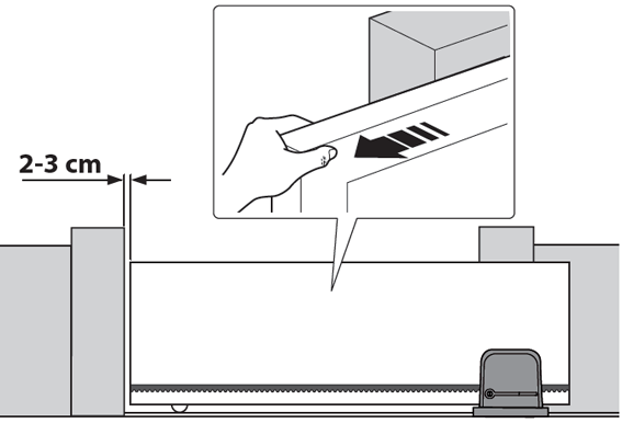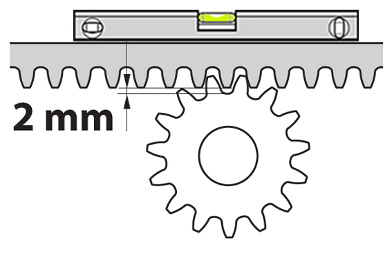 2. Mezi hřebenem a kolečkem nechte vůli 1–2 mm, aby se váha brány nepřenášela na motor.