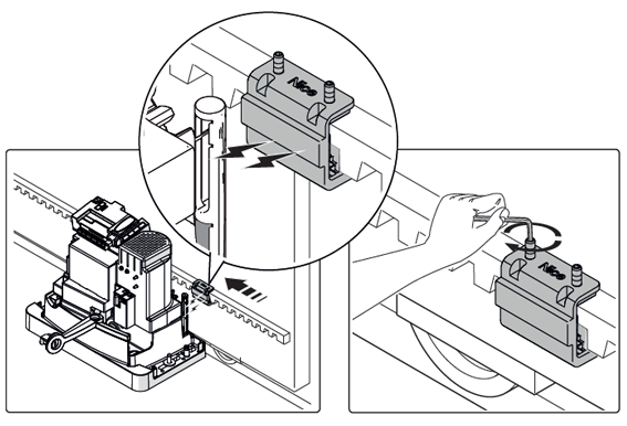 - Komponenty pro montáž pohonu: kotvicí prvky, montážní plata a magnetické dorazy pro indukční koncový spínač.