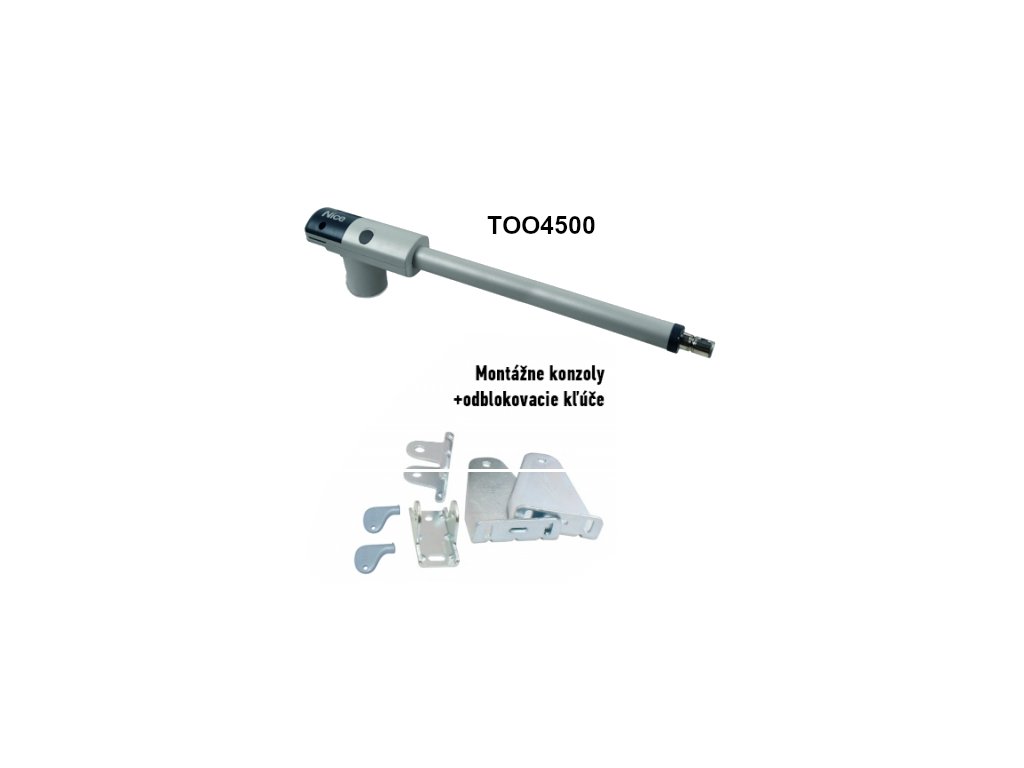 Pohon NICE TOO TOO4500 je určen pro automatizaci křídlových bran do délky křídla 4,5 m a hmotnosti do 250 kg. Pohon je založen na technologii 230 V. Jednotka je nevratný. Pohony TOO představují rozumnou volbu v poměru cena/výkon pro automatizaci křídlových bran v soukromém a lehkém průmyslu.Manuál ke stažení ».