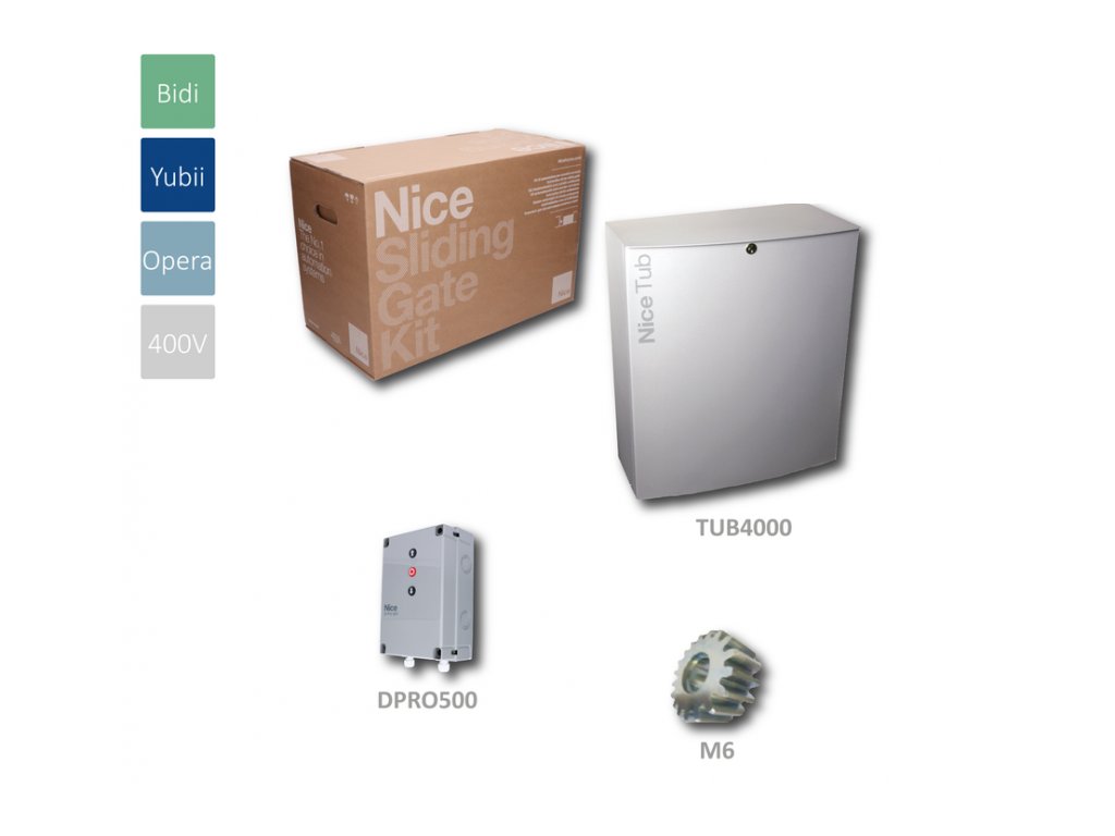 Pohon NICE TUB 4000 je určen pro posuvné brány závaží do 4000 kg a šířky průjezdu do 30 m. Samočinný elektromechanický pohon s vestavěnou řídicí jednotkou DPRO500 , včetně mechanické brzdy a chladicího ventilátoru . Součástí balení je také pastorek M6.