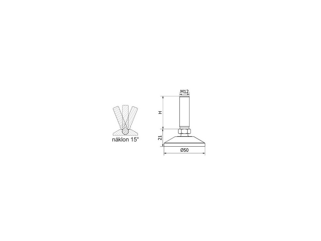 Kloubová nivelační noha s maximálním sklonem 15°.
