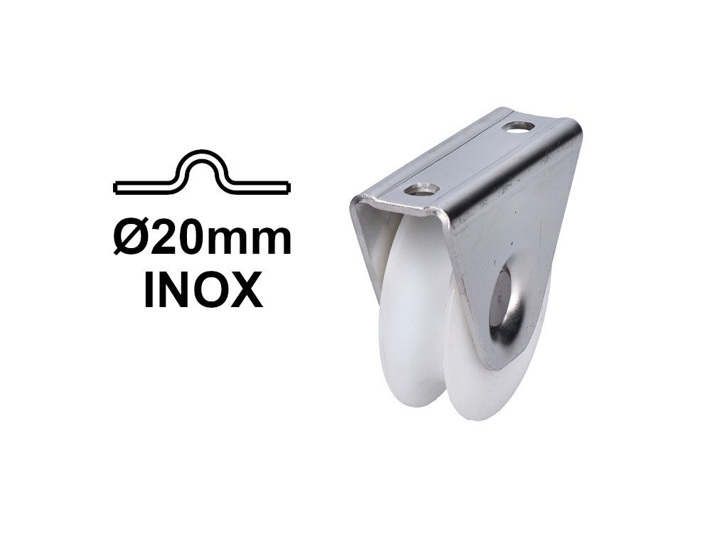 Nylonové kolečko kolejové brány pro kolejnici s U-šroubem Ø20 mm, INOX