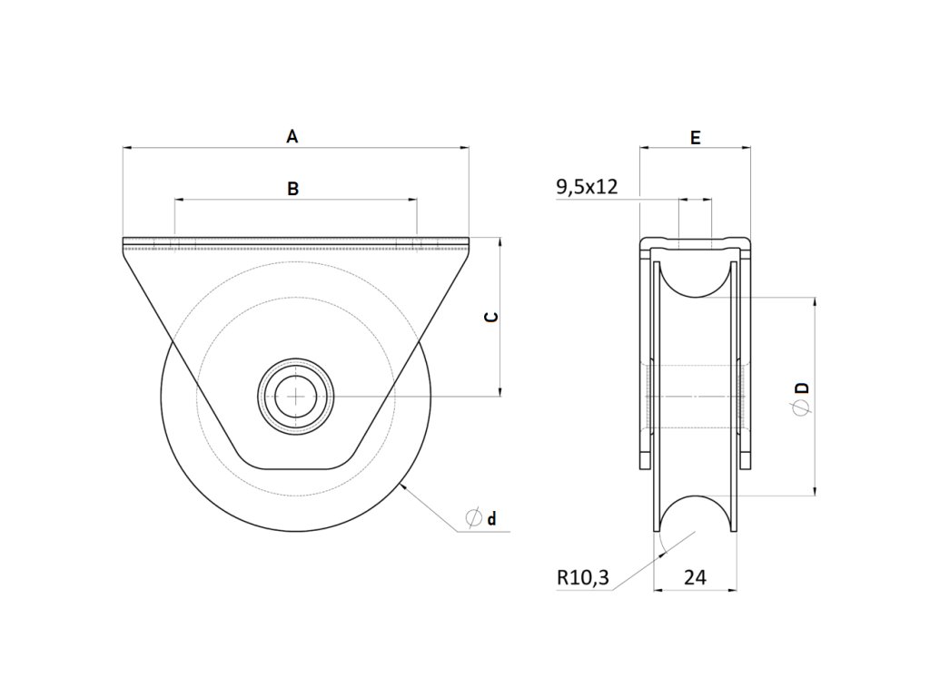 Nylonové kolečko pro kolejnici ve tvaru U, vyrobené z nerezové oceli AISI304.