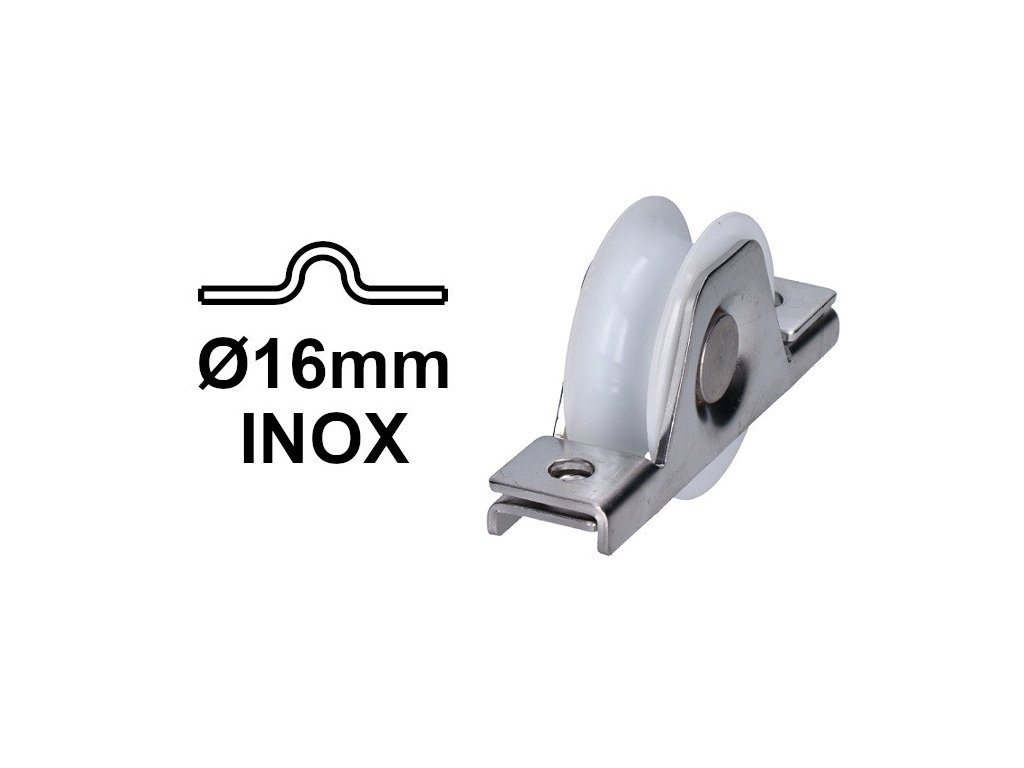 Nylonové kolečko pro kolejnici ve tvaru U, vyrobené z nerezové oceli AISI304.