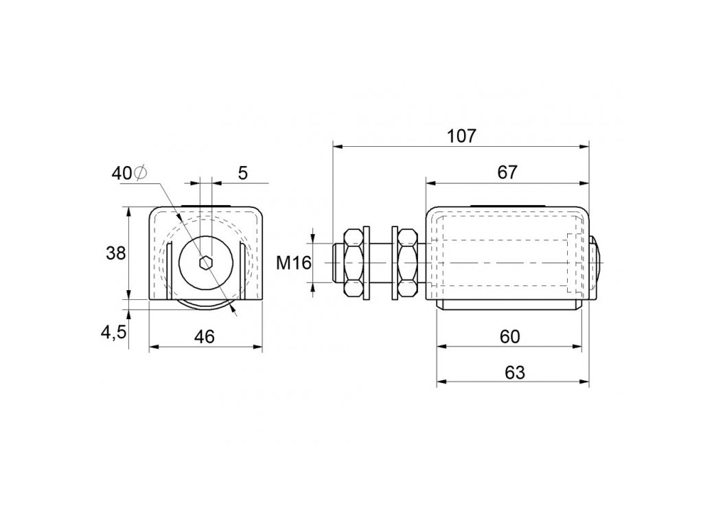 Nylonový váleček o průměru 40 mm se závitem M16 a ochranným krytem je vhodný pro horní vedení posuvných bran.