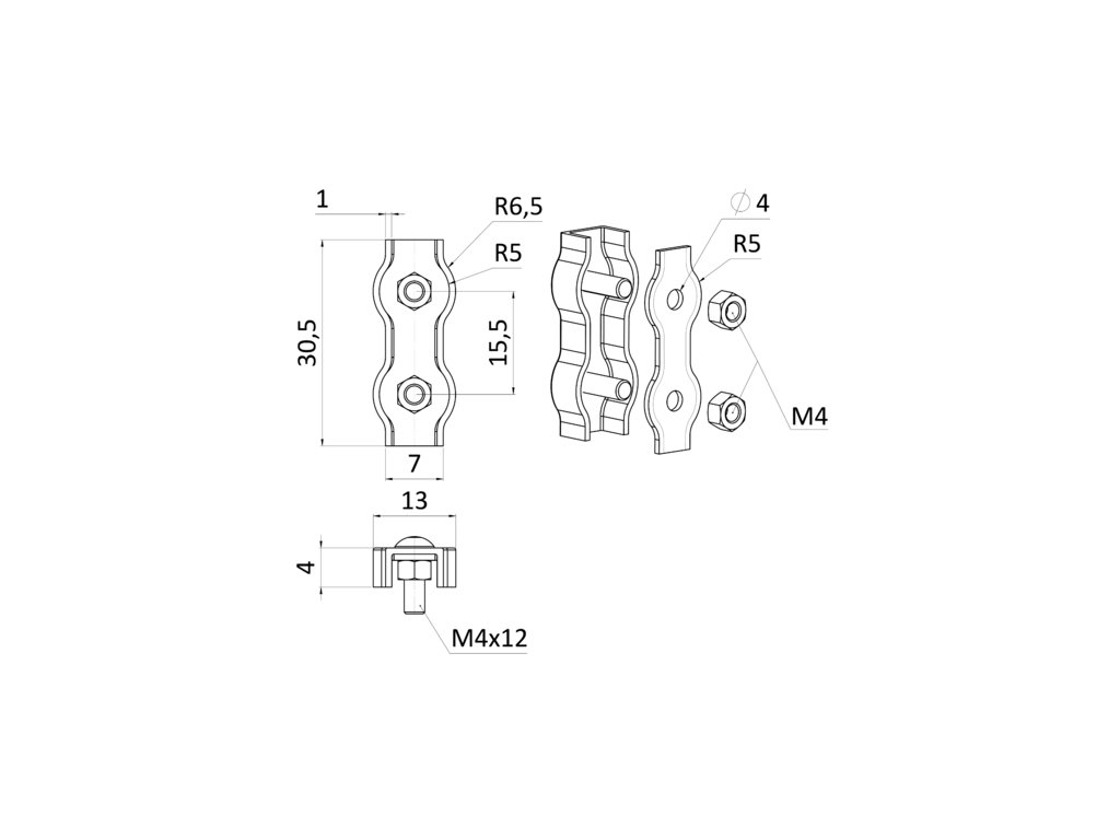Oblouková svorka pro nerezový drát ø 2 mm, dvojitá